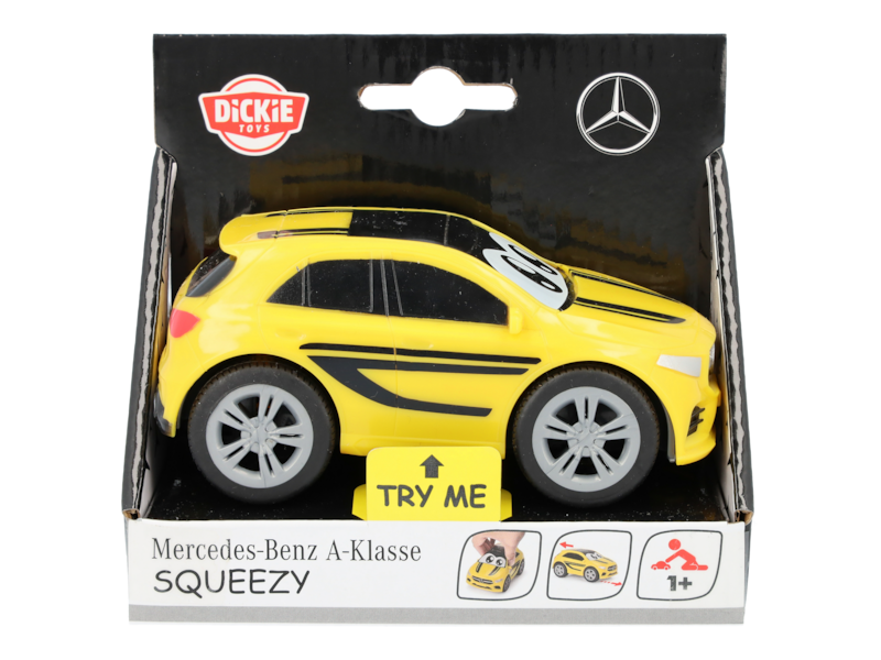 В такси включеноИдеальная игрушка для детей старше года: Мягкий, сминающийся A-Класс с дружелюбным лицом поднимает настроение и анимирует малышей к движению благодаря инерционному механизму. Большое внимание производитель игрушки – фирма Dickie – уделяет не только увлекательности, но и безопасности. У A-Класса Squeezy нет острых краев и мелких деталей, которые ребенок мог бы проглотить, и это не случайно. Кроме того, окраска детской игрушки не выцветает и устойчива к слюне.